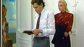 09:40Brunette secretary on smartphone in retro lingerie nylon heels