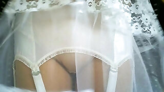 10:04Towheaded Milf flashing wanking in sheer nylon retro suspenders