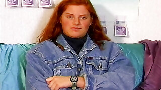 A chubby German teen showing off her shaved pussy