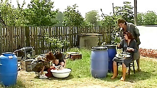 German Schoolgirl and Teacher fucked by 2 guys
