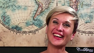 Round titted German lady luvs riding a rigid pecker with her tight asshole